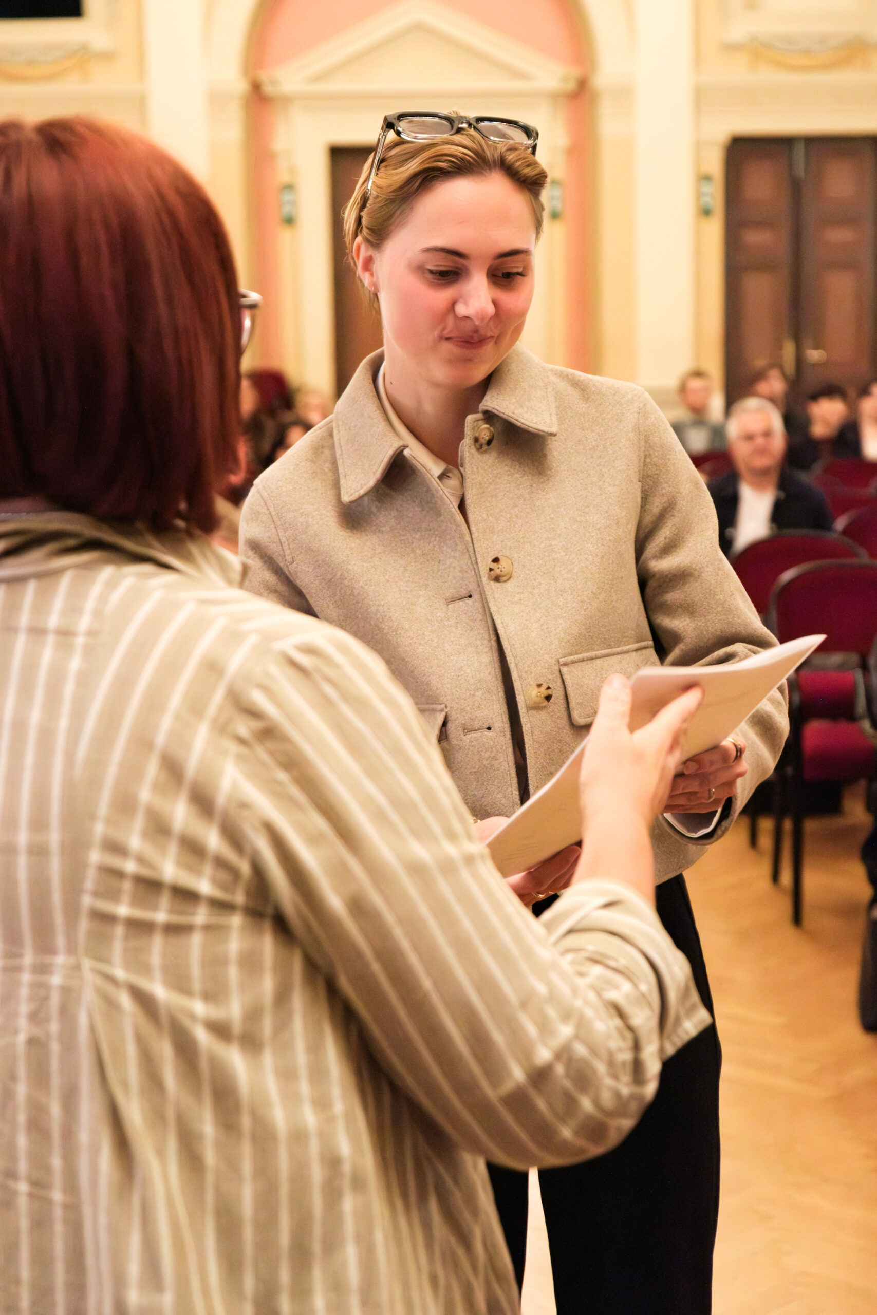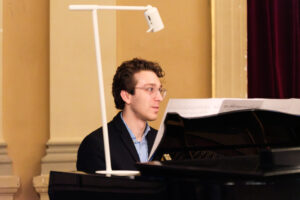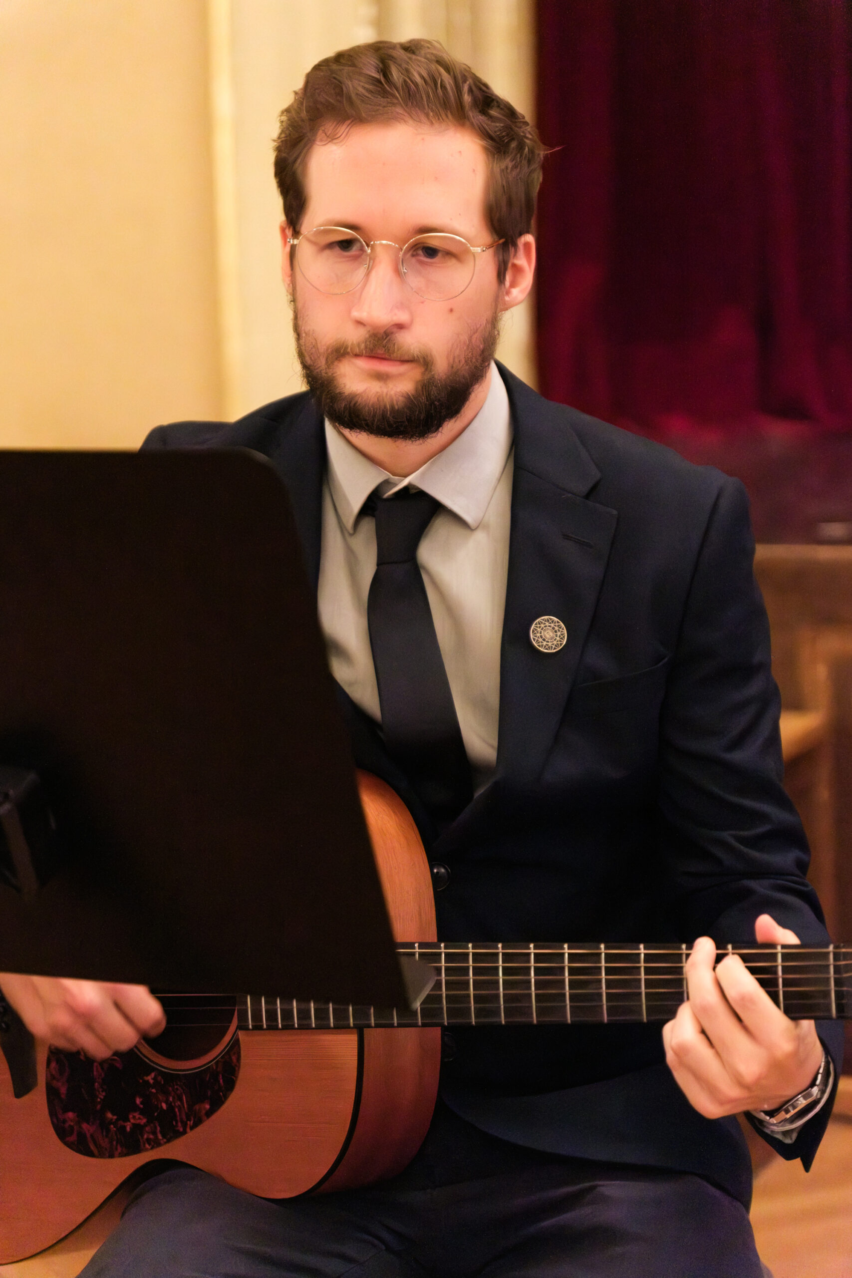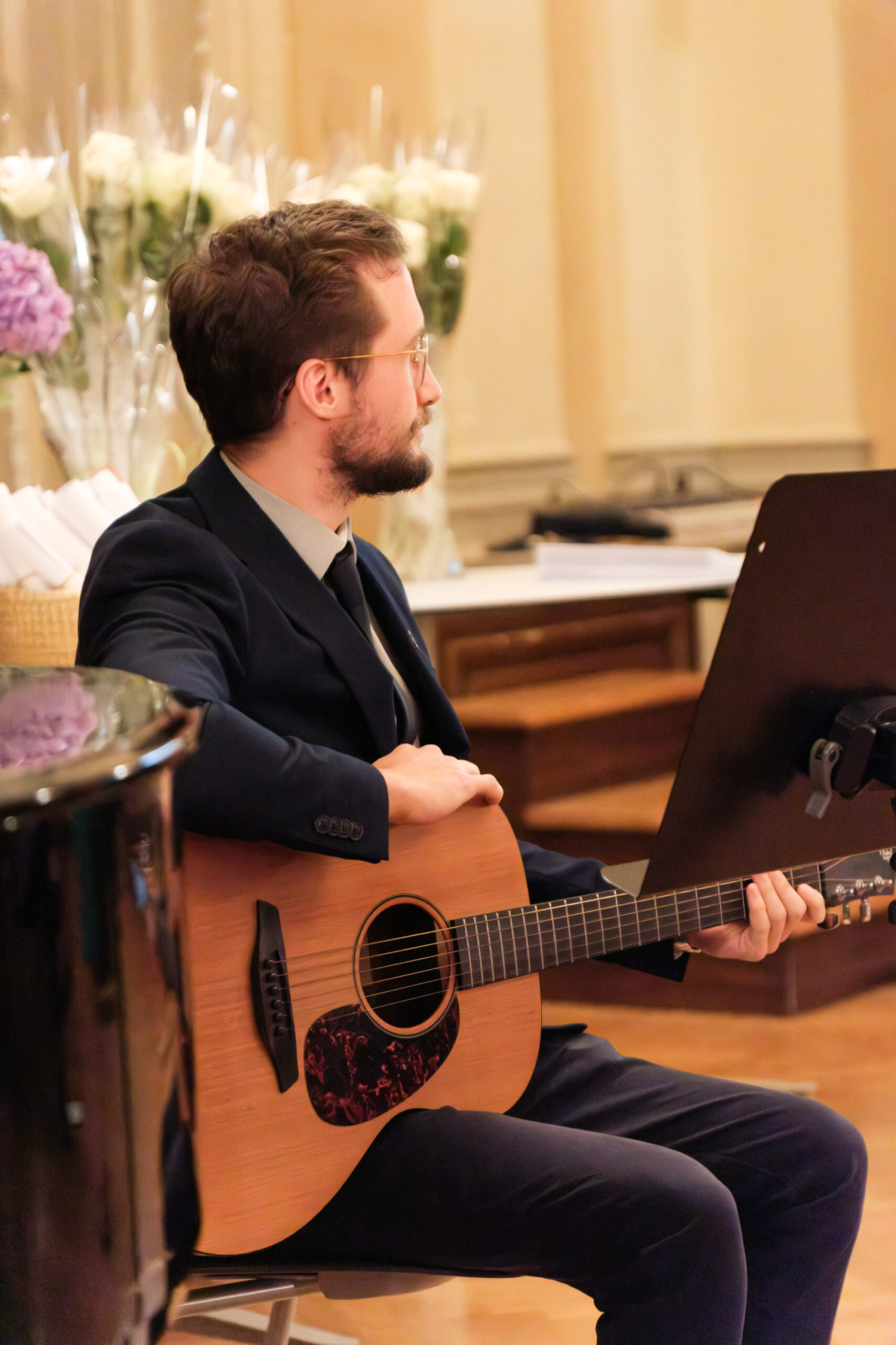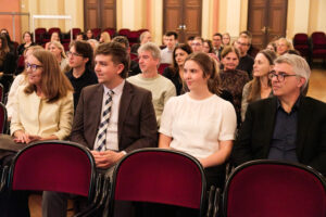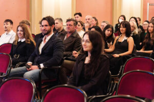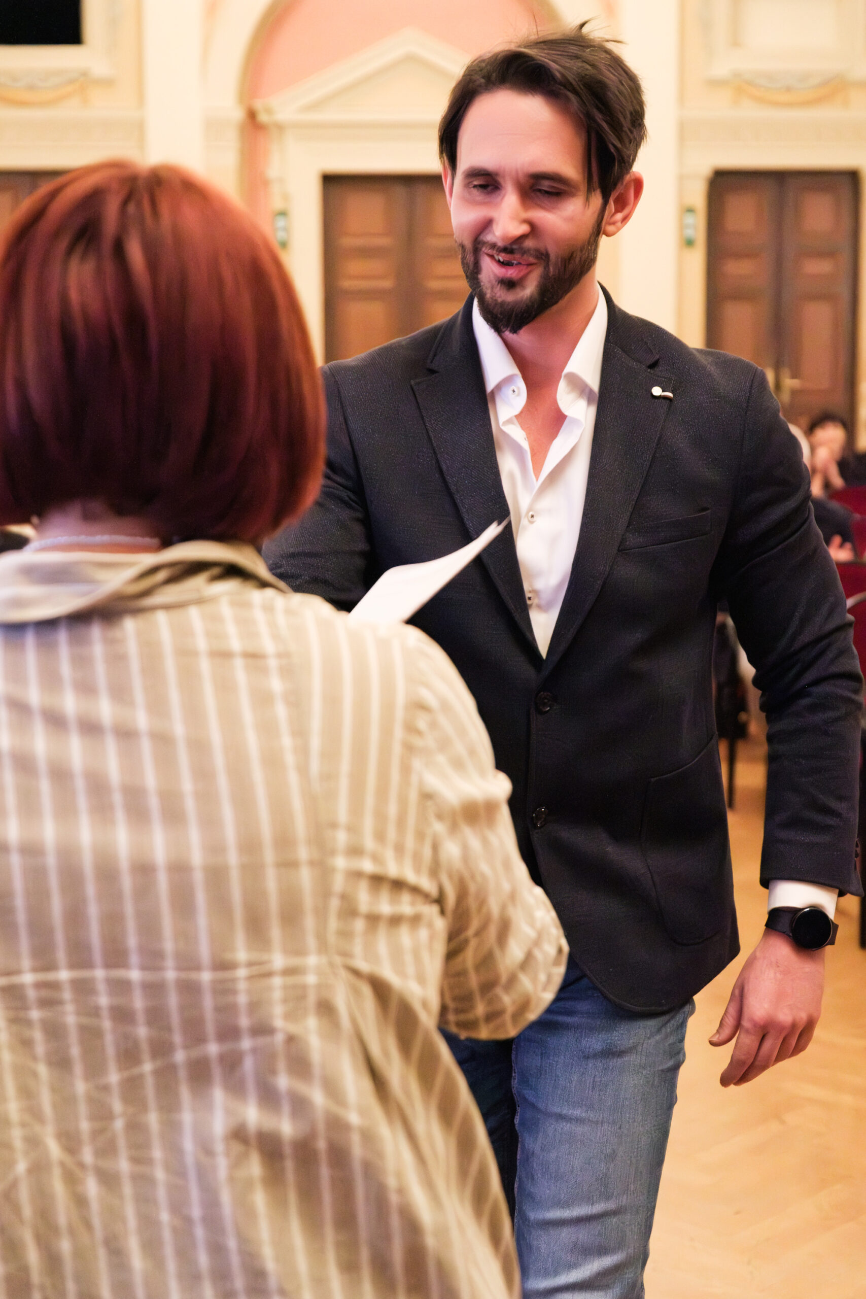 Alle positionierten sich mit weißen Rosen vor dem weinroten Vorhang – ein stimmiges Bild, das im Zweigesang von unseren Musikern mit Freude und Witz untermalt wurde.