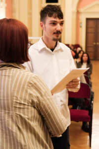 Wie immer hatte unsere Administratorin Marina Mayr alle Zeugnisse bestens vorbereitet, die Übergabe wurde herrlich festgehalten von Kollegen Günther Achleitner.