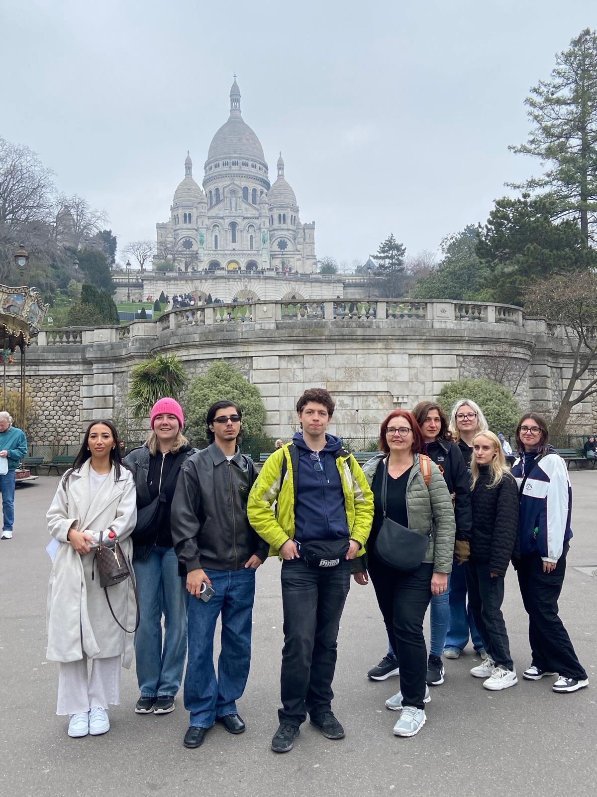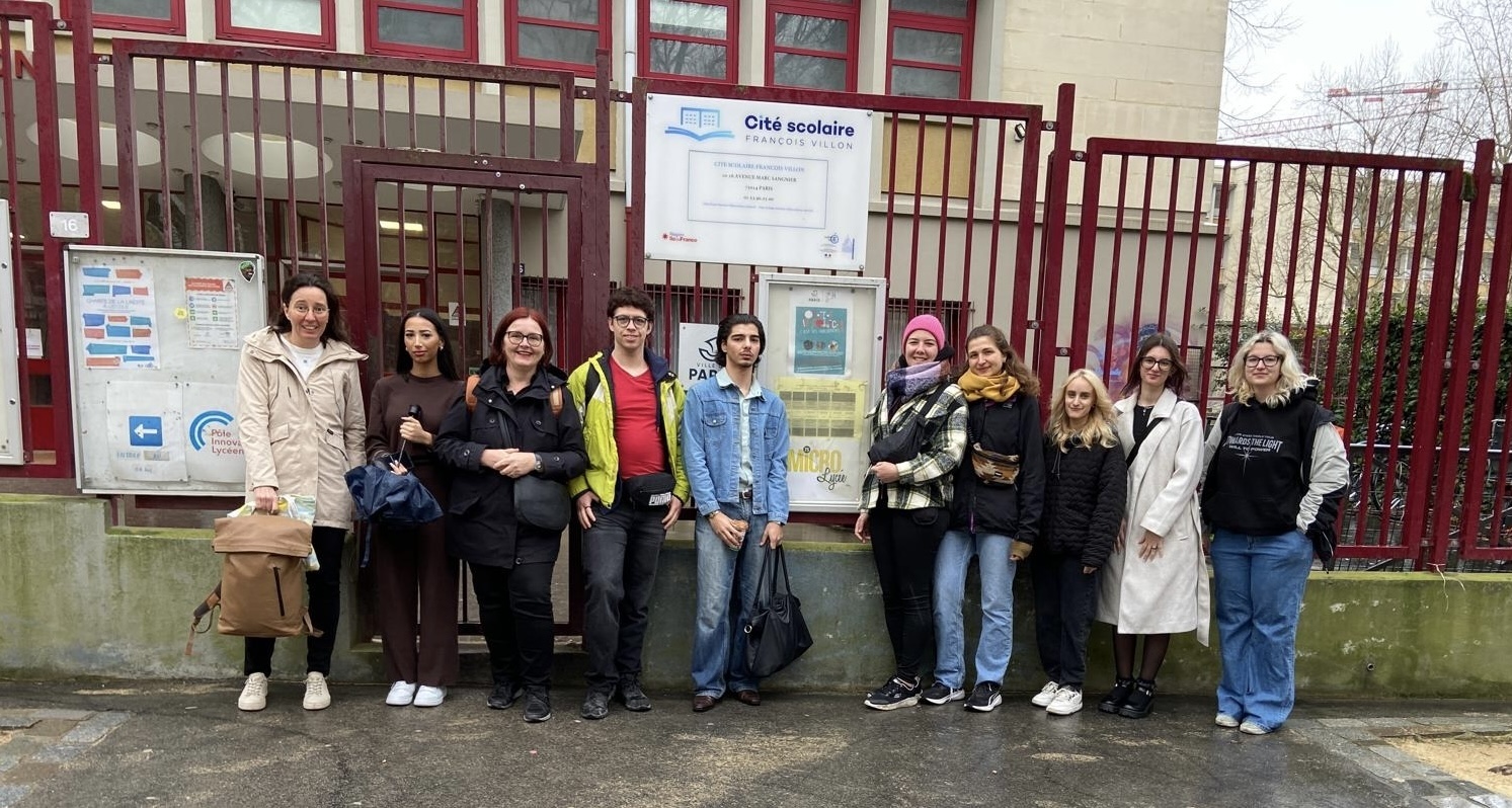 Von 8.-15. März 2025 fuhren Marion Lasinger und Christa Kaissl mit acht Studierenden für acht Tage nach Paris zu unserer Partnerinstitution. Es gab Kontakt zu drei verschiedenen Einrichtungen: Das Schulzentrum Cité Scolaire François Villon, unsere Partnerinstitution im 14. Pariser Arrondissement, beherbergt ein Microlycée, also ein Gymnasium der zweiten Chance, das die letzten beiden Schulstufen anbietet und zur Matura führt. Die 6. Klasse wird im „Pôle Innovant Lycéen“ angeboten und ermöglicht den Schüler/-innen, eine berufliche Ausbildung zu wählen, Praktika zu machen oder später ins Microlycée aufzusteigen. Die Schüler/-innen sind – wie die meisten Teilnehmer/-innen dieser Reise – 17 bis 24 Jahre alt.