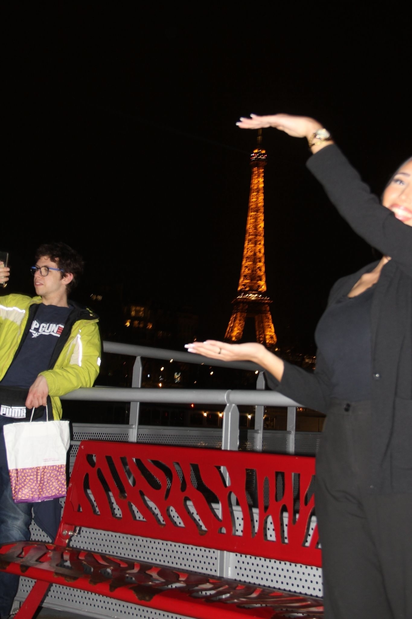 Arc de Triomphe (zwecks Überblick); Champs Elysées, Besichtigung der Galeries Dior; Kaffeepause im Petit Palais; Place de la Concorde; Jardin des Tuileries; Pyramide du Louvre; Besichtigung des Künstlerzentrums 59, rue de Rivoli; Centre Pompidou (von außen) mit dem Stravinsky-Brunnen, Mittagessen im jüdischen Viertel, dem Marais; Notre Dame de Paris (aber nur von außen); Bootsfahrt (Eiffelturm by night).