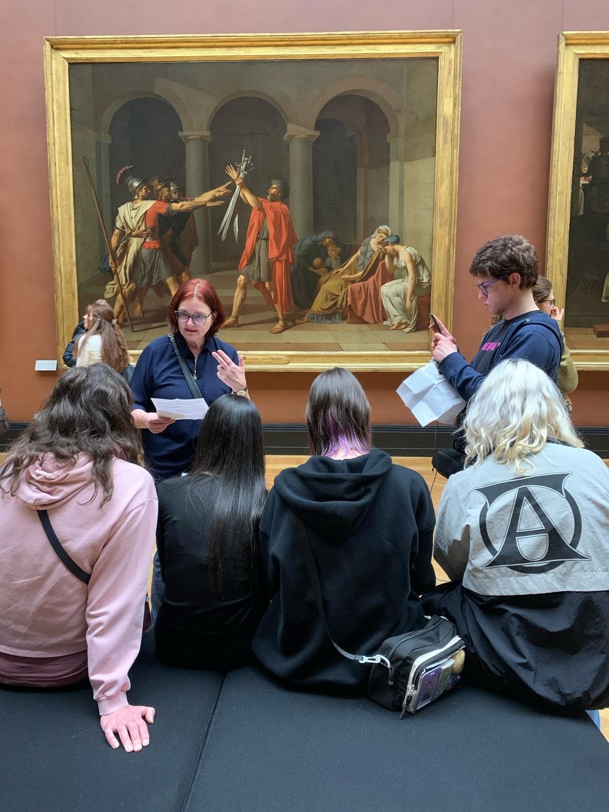 Auch die Lehrerinnen waren vorbereitet: Jean Auguste Dominique Ingres: Die große Odalisque; Eugène Delacroix: Die Freiheit führt das Volk; Théodore Géricault: Das Floß der Medusa; Die Venus von Milo.