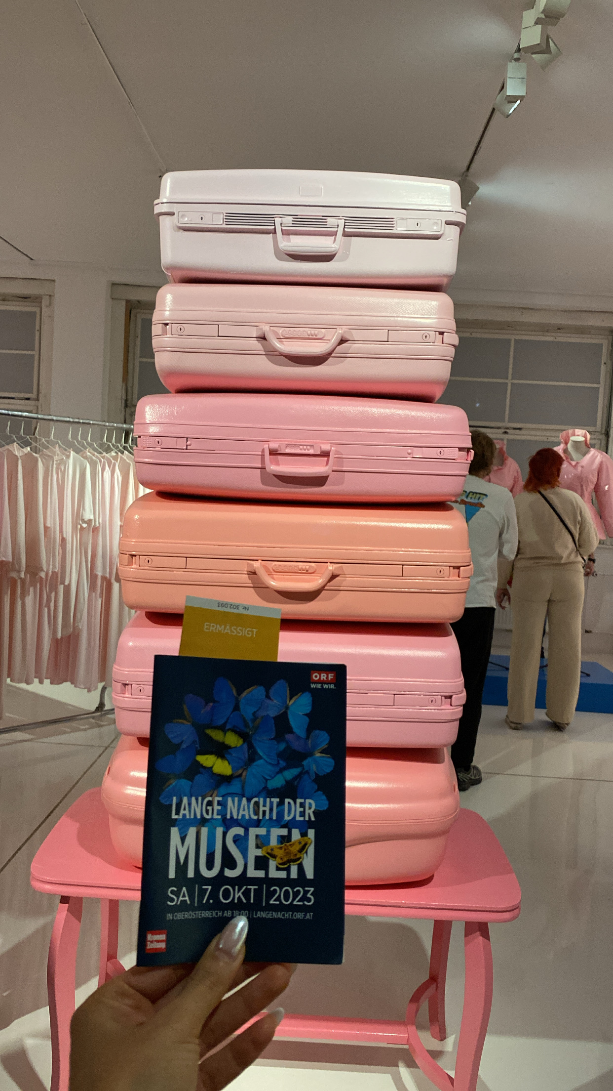 Die Werke waren nicht nach Künstlern oder Epochen, sondern nach Farben sortiert. Diese unkonventionelle Herangehensweise ermöglichte einen frischen Blick auf die Kunst. Es war faszinierend zu beobachten, wie die Farbpaletten die Stimmung und Emotion der verschiedenen Werke beeinflussten. Die Ausstellung war ein buntes, mit viel Gefühl für Details, ästhetisches und einprägsames Zusammenspiel. (…) Die Idee mit dem „Blind-date“ mit einem Kunstwerk, empfand ich als sehr originell und humorvoll. (Sophia Schmidhofer)