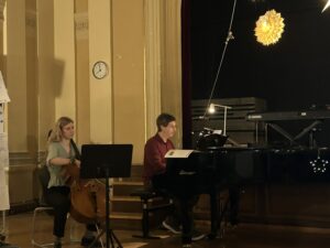 Die Luft – voller Musik. Madita Raab-Obermayr und Jan Winterauer, der Chor sowie Johannes Gahleitner und Johanna Wittner haben für ein stimmig-flockiges Programm gesorgt: Von A Capella über Klavier und Cello bis Gesumm wurde Weihnachtliches gesungen und mitgesungen.