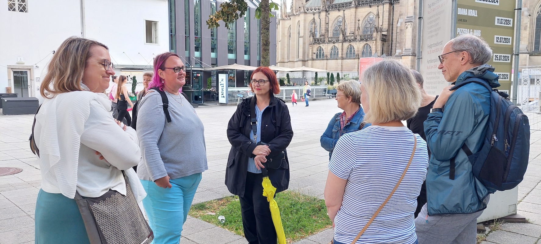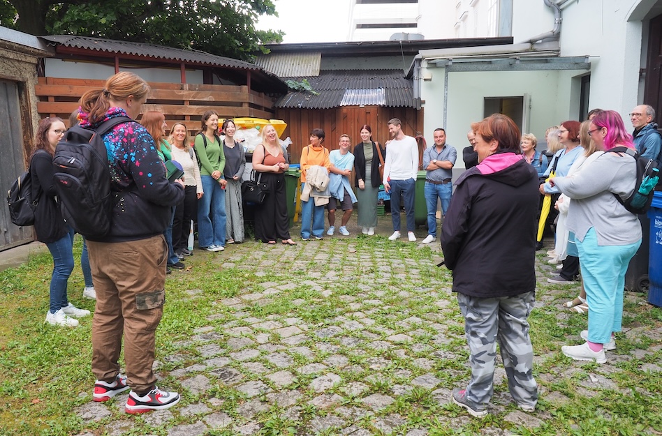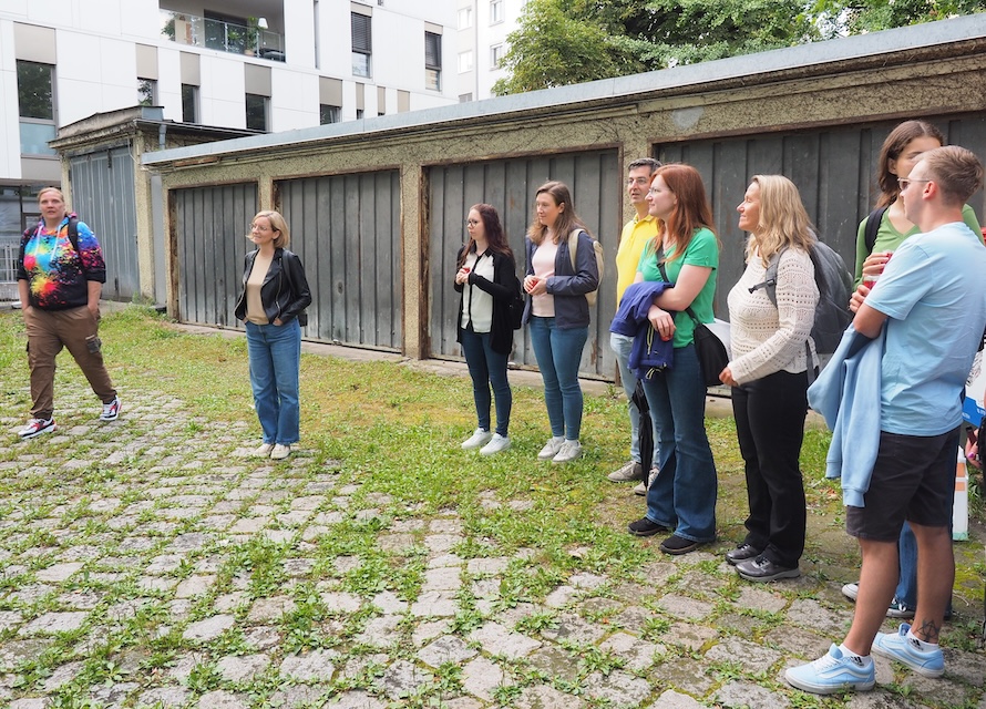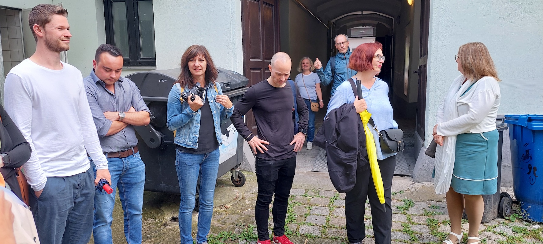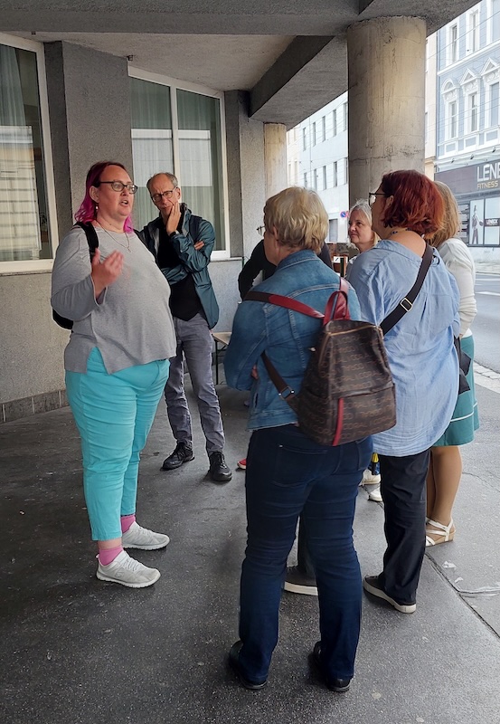 Am Mittwoch, 4.7.2024, trafen sich 21 Interessierte zum Kulturausflug. Startpunkt der Gratwanderung war das Büro der Arge für Obdachlose bzw. die Kupfermuckn-Redaktion in der Marienstraße 11.