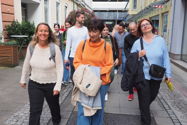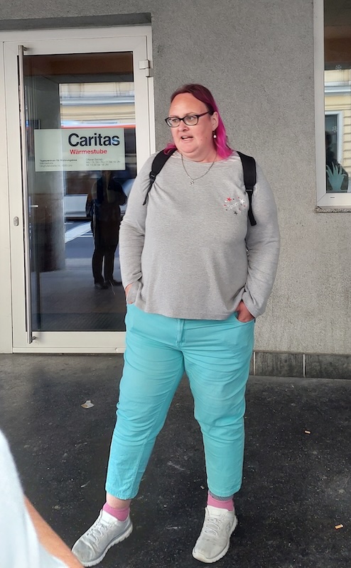 Nach einer kurzen allgemeinen Einführung im Innenhof traten wir unsere rund zweistündige Wanderung in drei kleinen Gruppen an. Unsere drei weiblichen Guides kennen „das Leben auf der Straße“ aus eigener Erfahrung und führten uns an verschiedene Plätze in Linz, an denen wohnungslosen Menschen geholfen wird. Beispielhaft sei das „Of(f))´n Stüberl“ der Evangelischen Stadt-Diakonie Linz erwähnt.