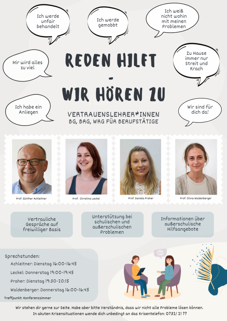 Sie haben uns Ihren Ausbildungsweg anvertraut – darum kümmern wir uns nach Kräften. Manchmal gibt es aber auch Gesprächsbedarf darüber hinaus. Unser Vertrauenslehrkräfteteam ist für Sie da.